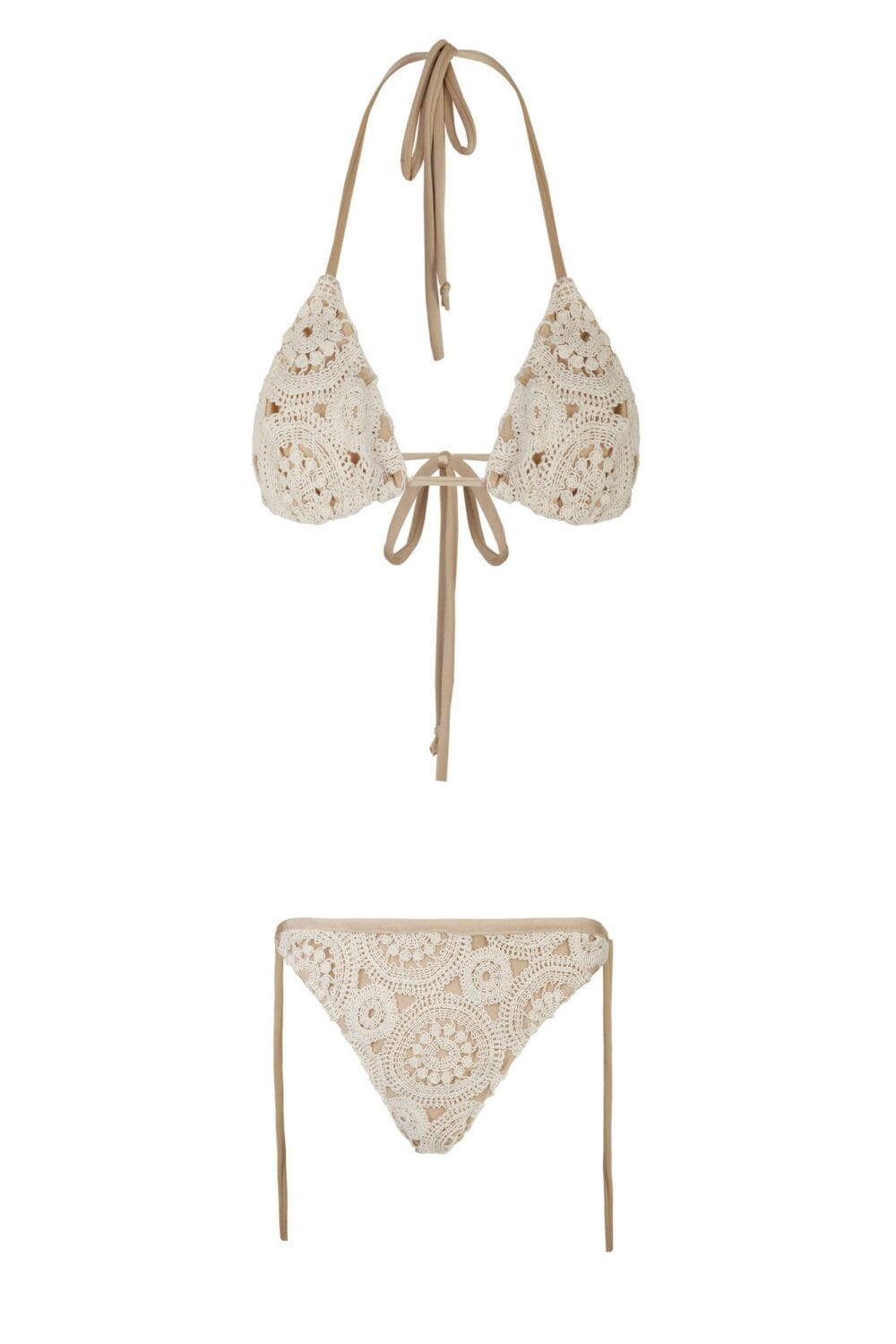 Klasyczne bikini z makramy bawełnianej w kolorze naturalnym na podszewce.