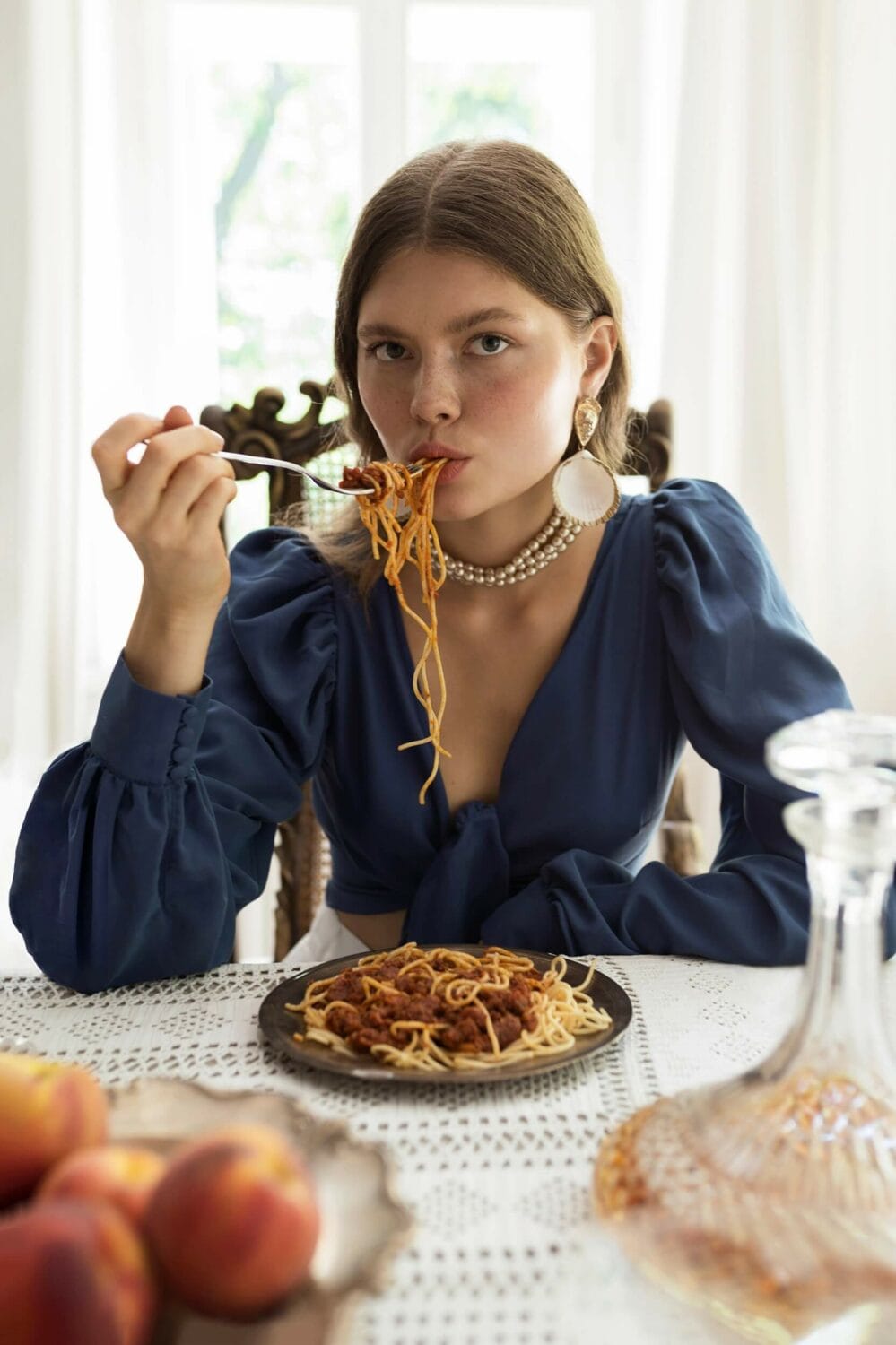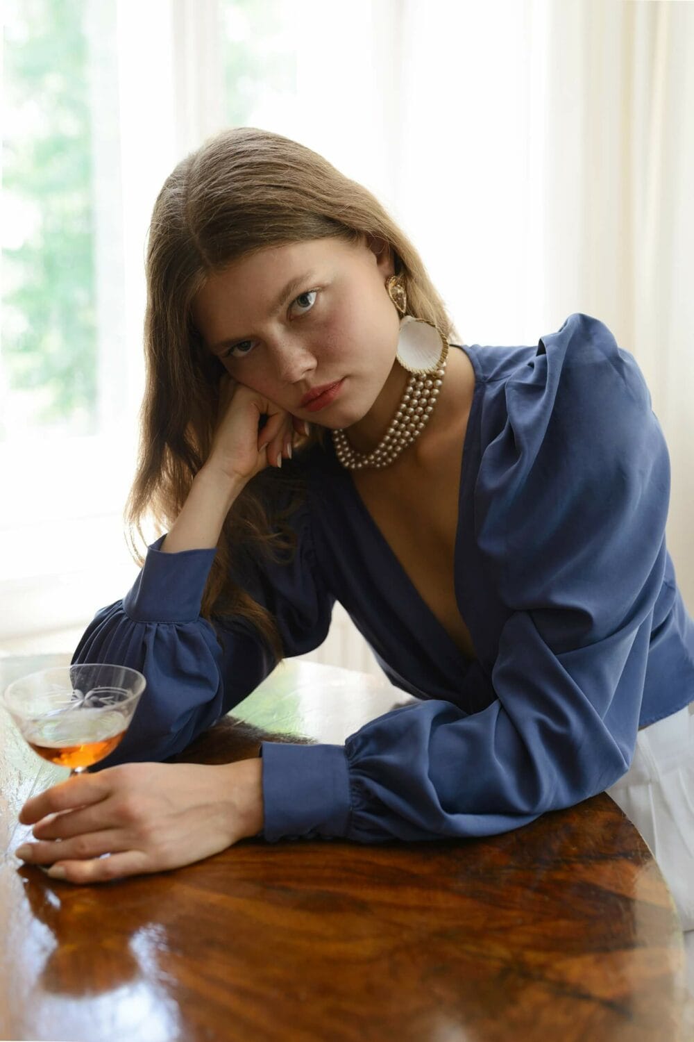 Bluzka z wiązanym dekoltem i bufiastymi rękawami. Możesz ją wiązać na kilka sposobów (z przodu, z boku, z tyłu) i sama regulować głębokość dekoltu. Bardzo wyjątkowy, a zarazem uniwersalny element ubioru, który może posłużyć za motyw przewodni, bądź bazę do innych stylizacji. Jedna rzecz – wiele możliwości!