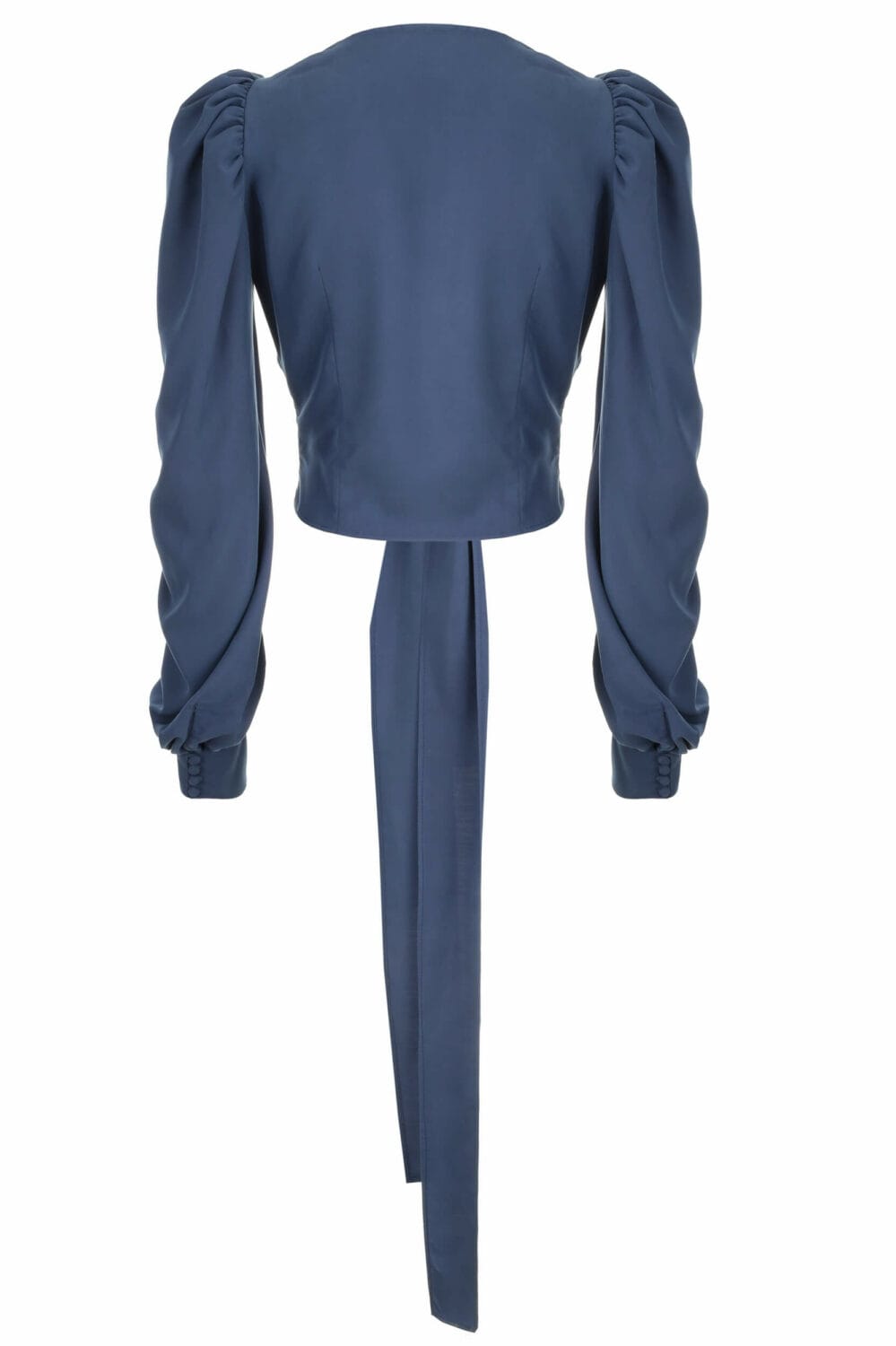 • Rękaw długi z bufką wykończony oblekanymi guzikami