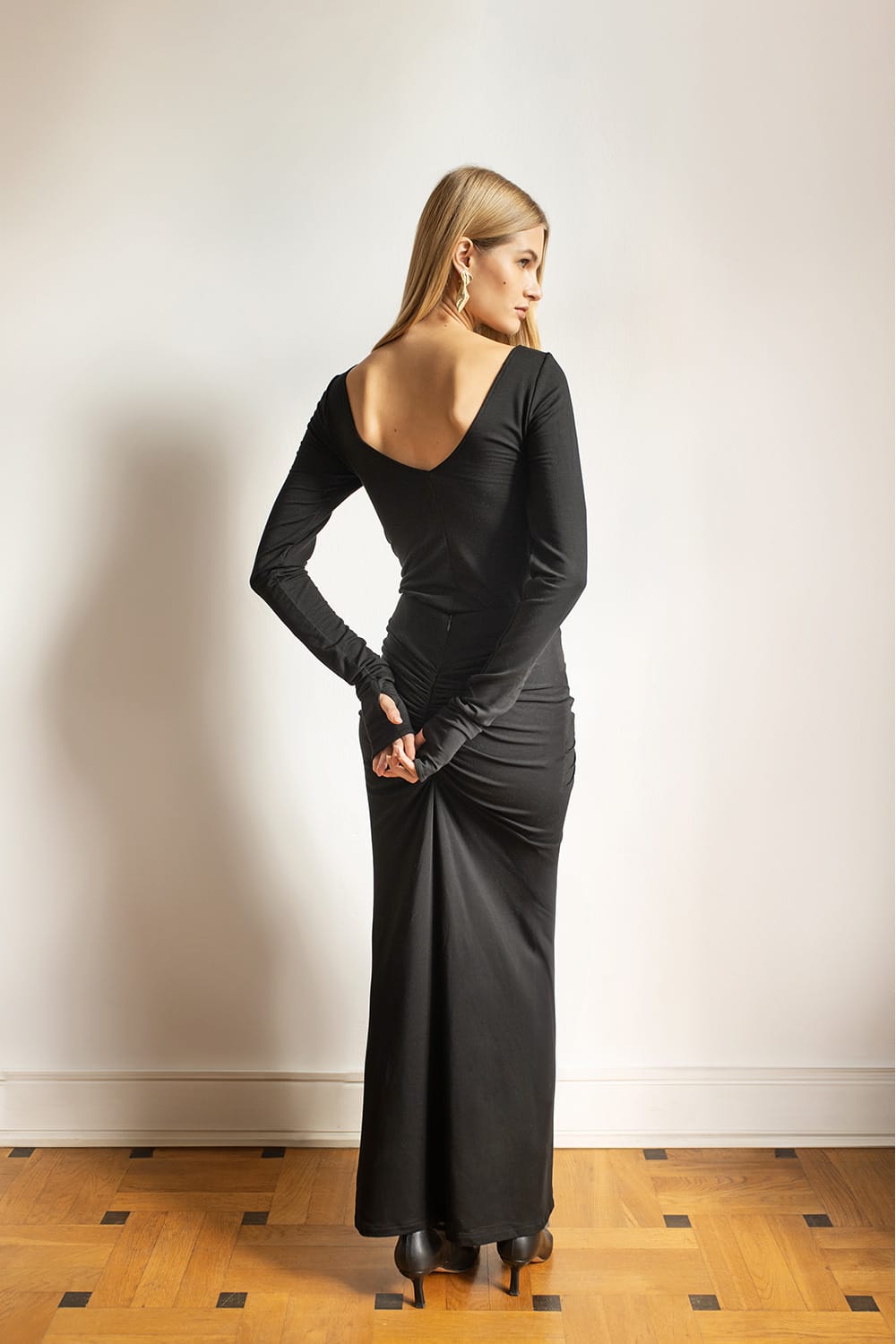 Bluzka dzianinowa z dekoltem w łódkę i długim rękawem zwieńczonym wycięciem na palec. Dzięki drapowaniu pięknie podkreśla biust i sylwetkę. Wyjątkowo wygodna i niebanalna, posłuży na wiele okazji, od casualowych do formalnych. W zestawie ze spódnicą SILHOUETTE tworzy spójną całość.