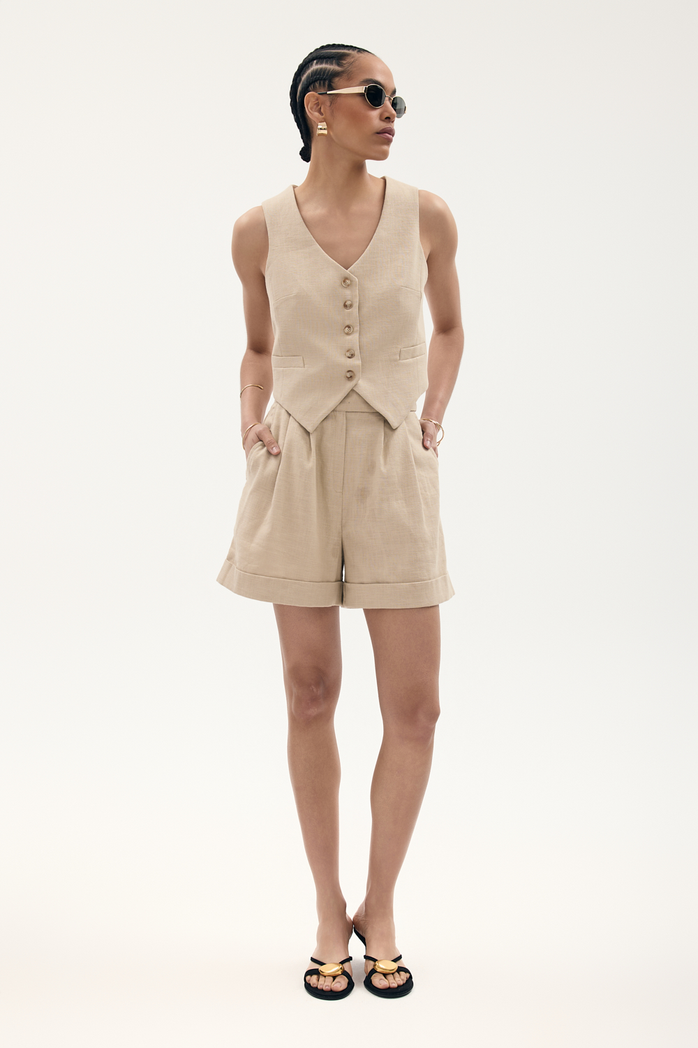 Idealnie skrojona kamizelka na podszewce, zapinana na guziczki. Piękne dopełnienie zarówno eleganckich jak i streetwear’owych stylizacji. Można nosić w komplecie w żakietem PARIS.