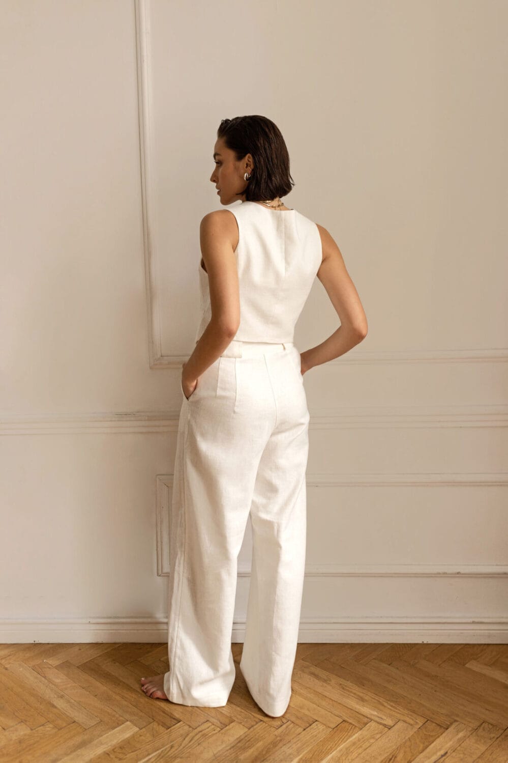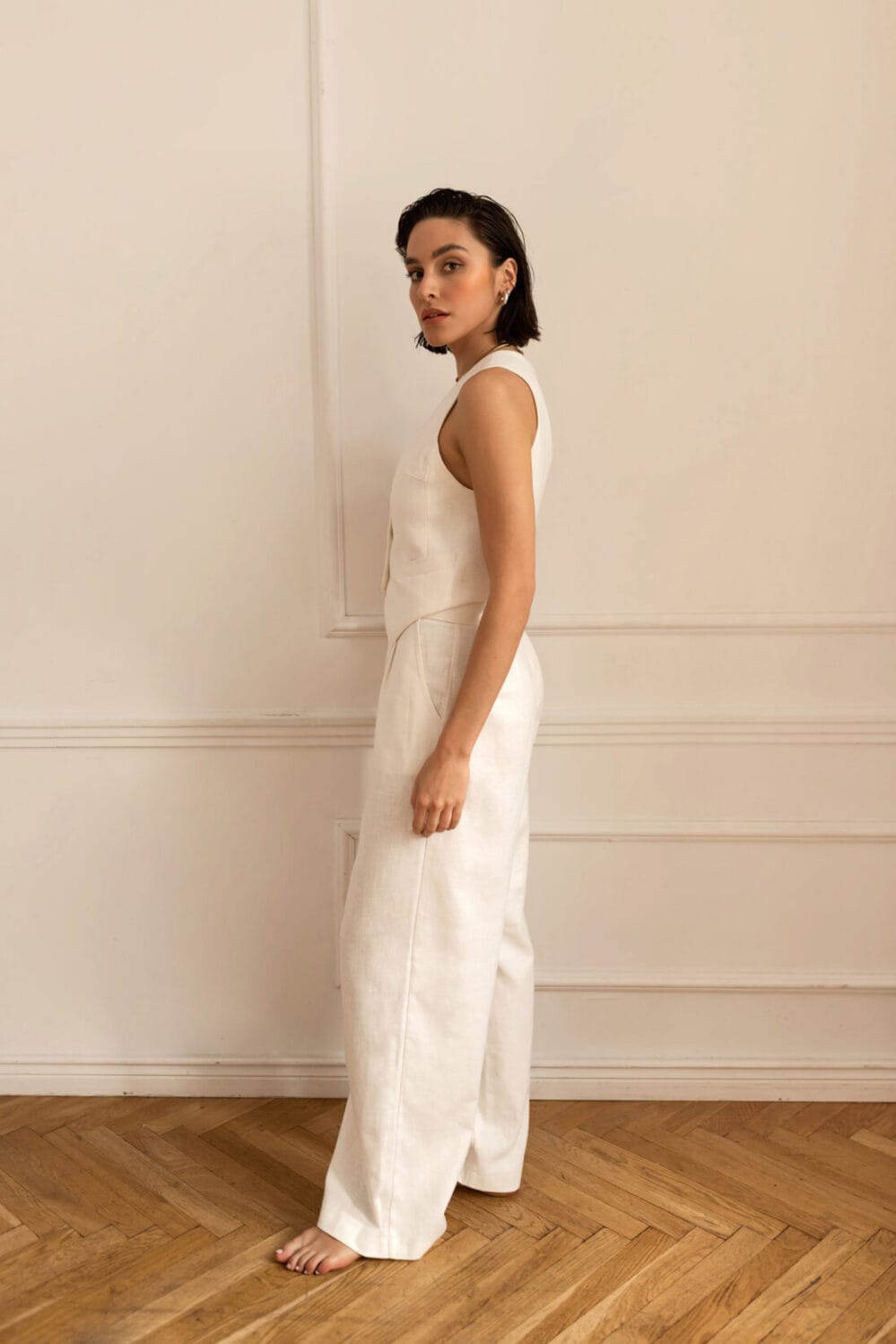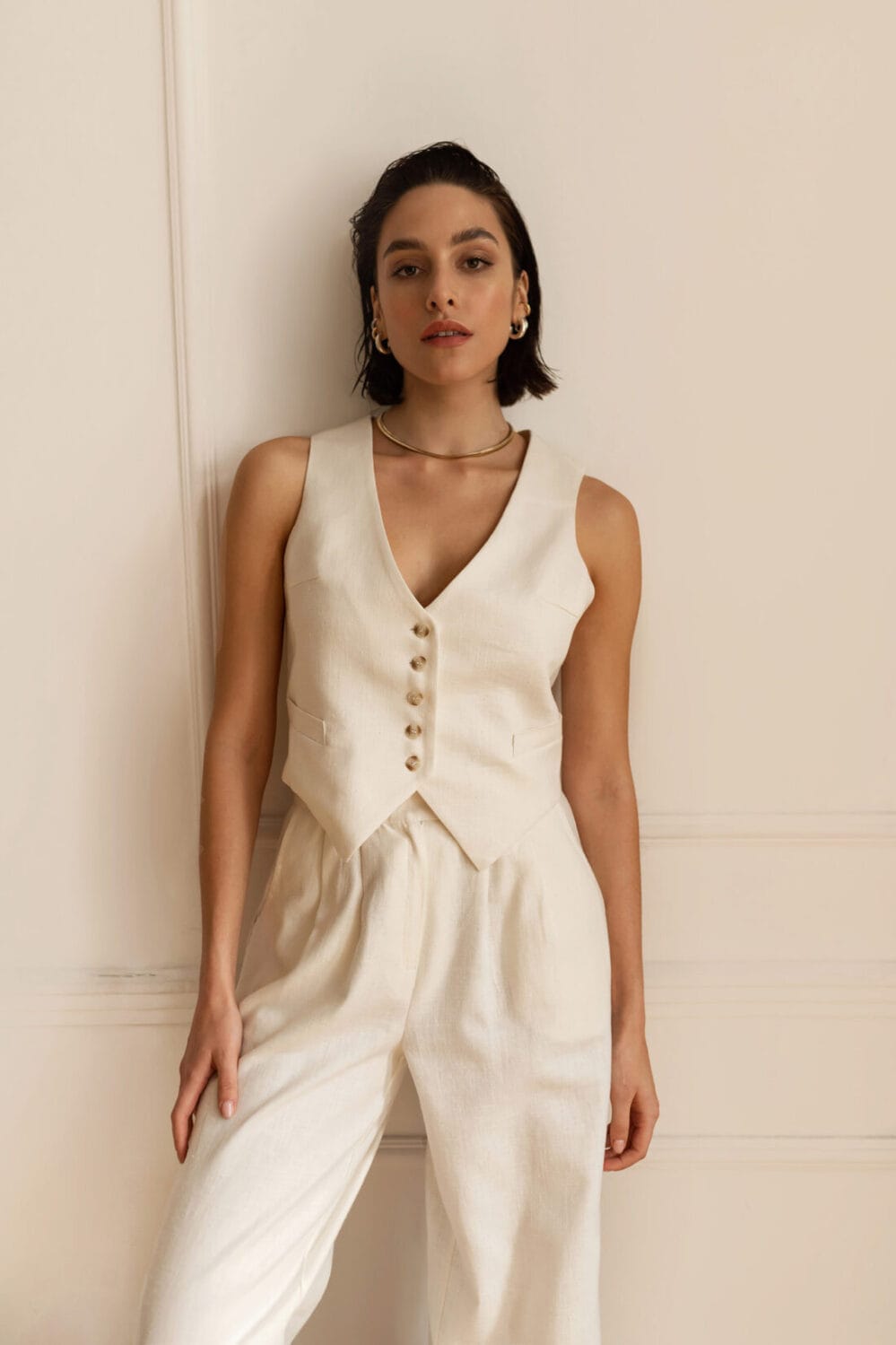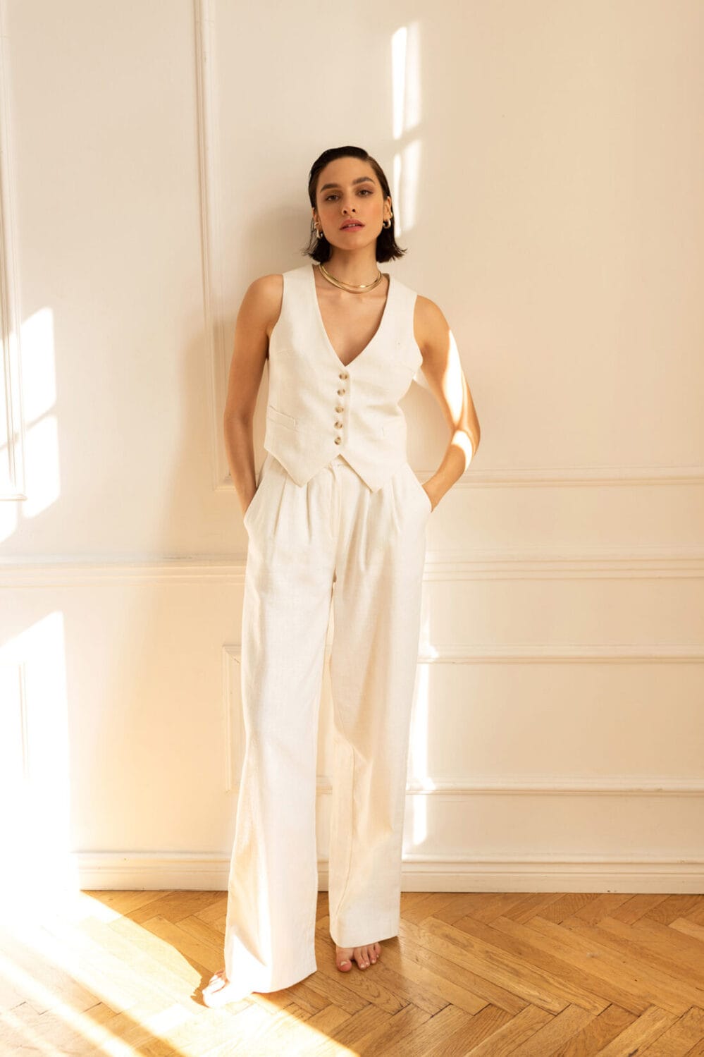 Idealnie skrojona kamizelka na podszewce, zapinana na guziczki. Piękne dopełnienie zarówno eleganckich jak i streetwear’owych stylizacji. Można nosić w komplecie w żakietem PARIS.