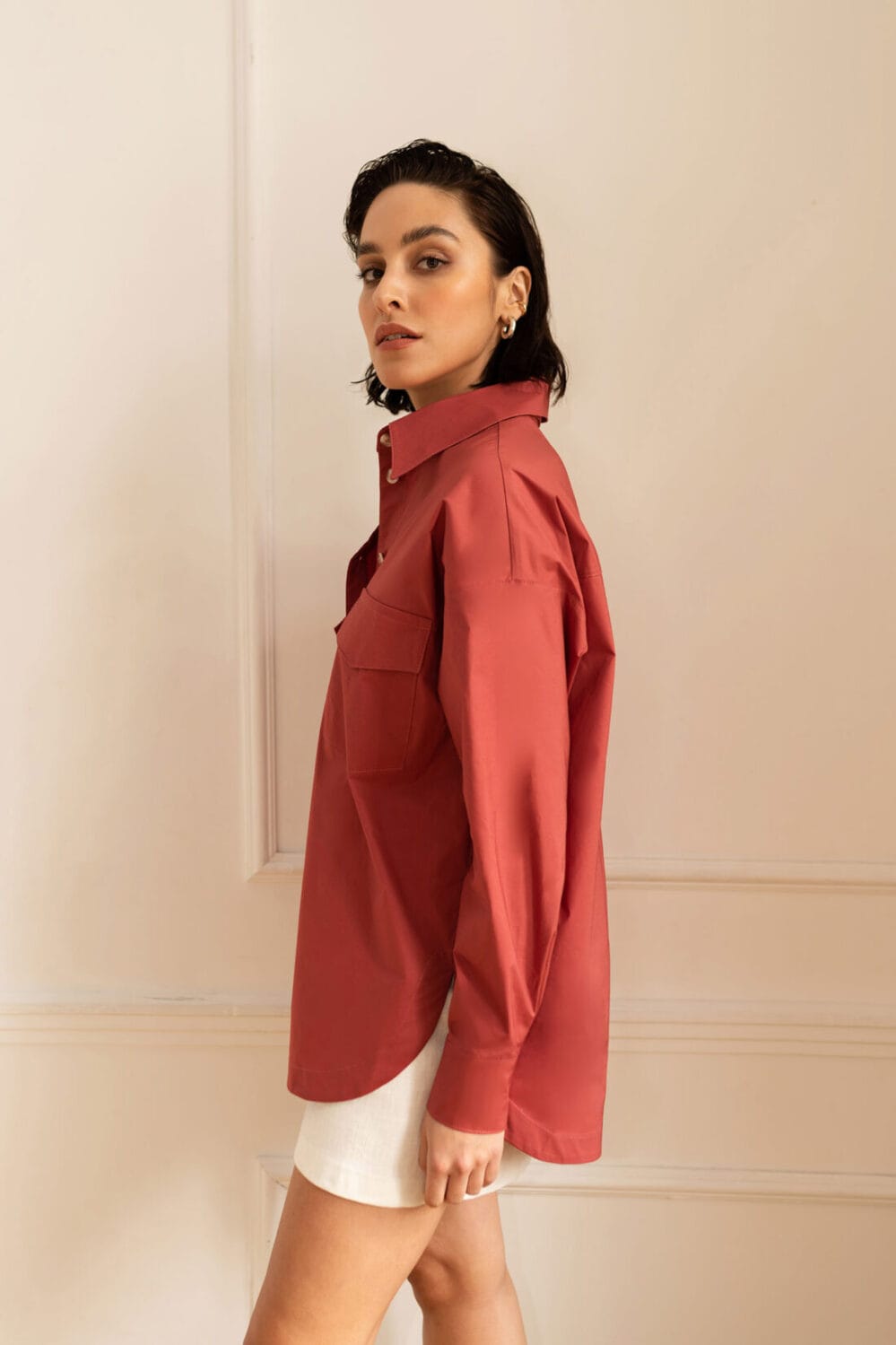 Luźna koszula o kroju oversize, zapinana na guziki. Można nosić ją również jako okrycie wierzchnie jesienią, latem, czy wiosną.