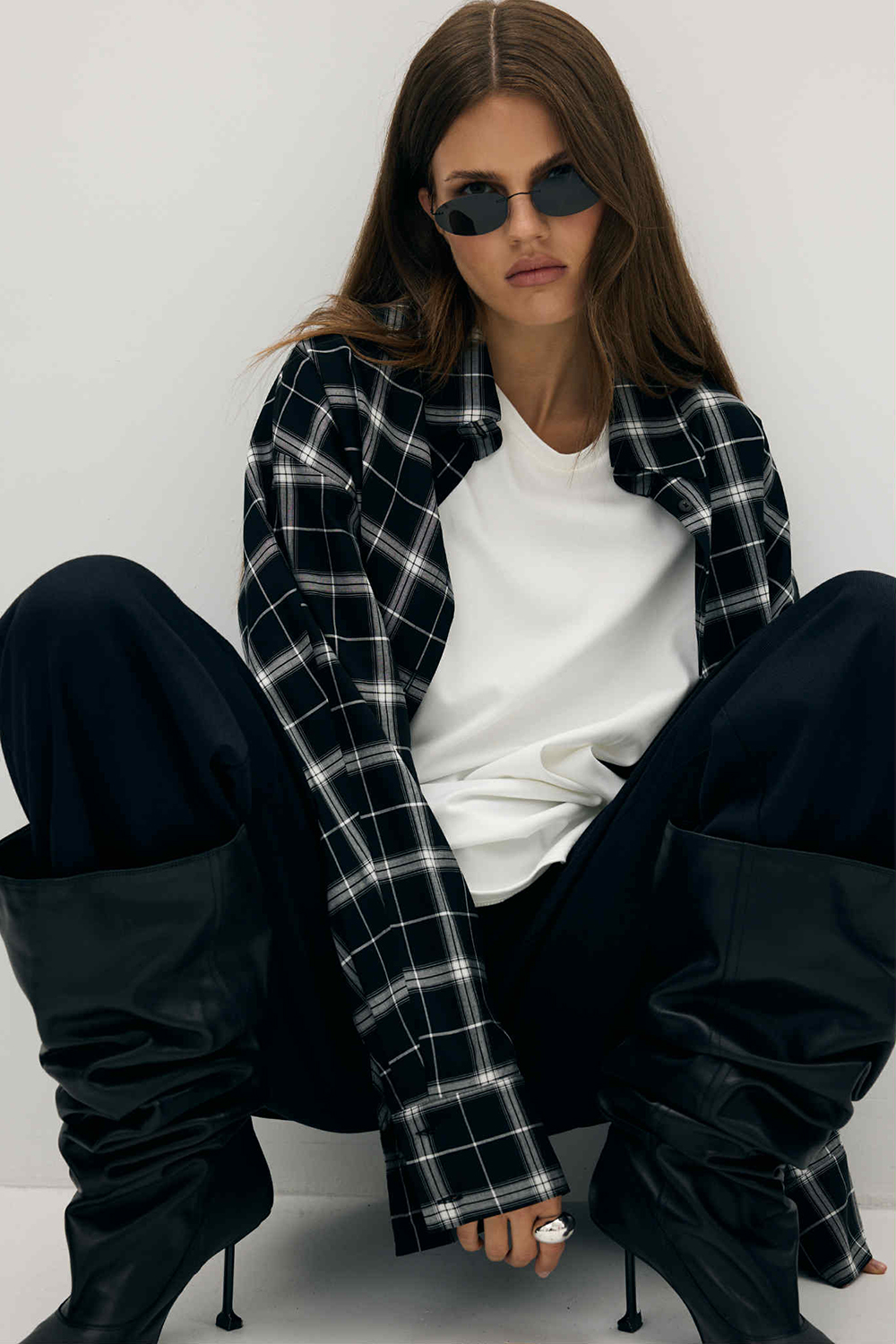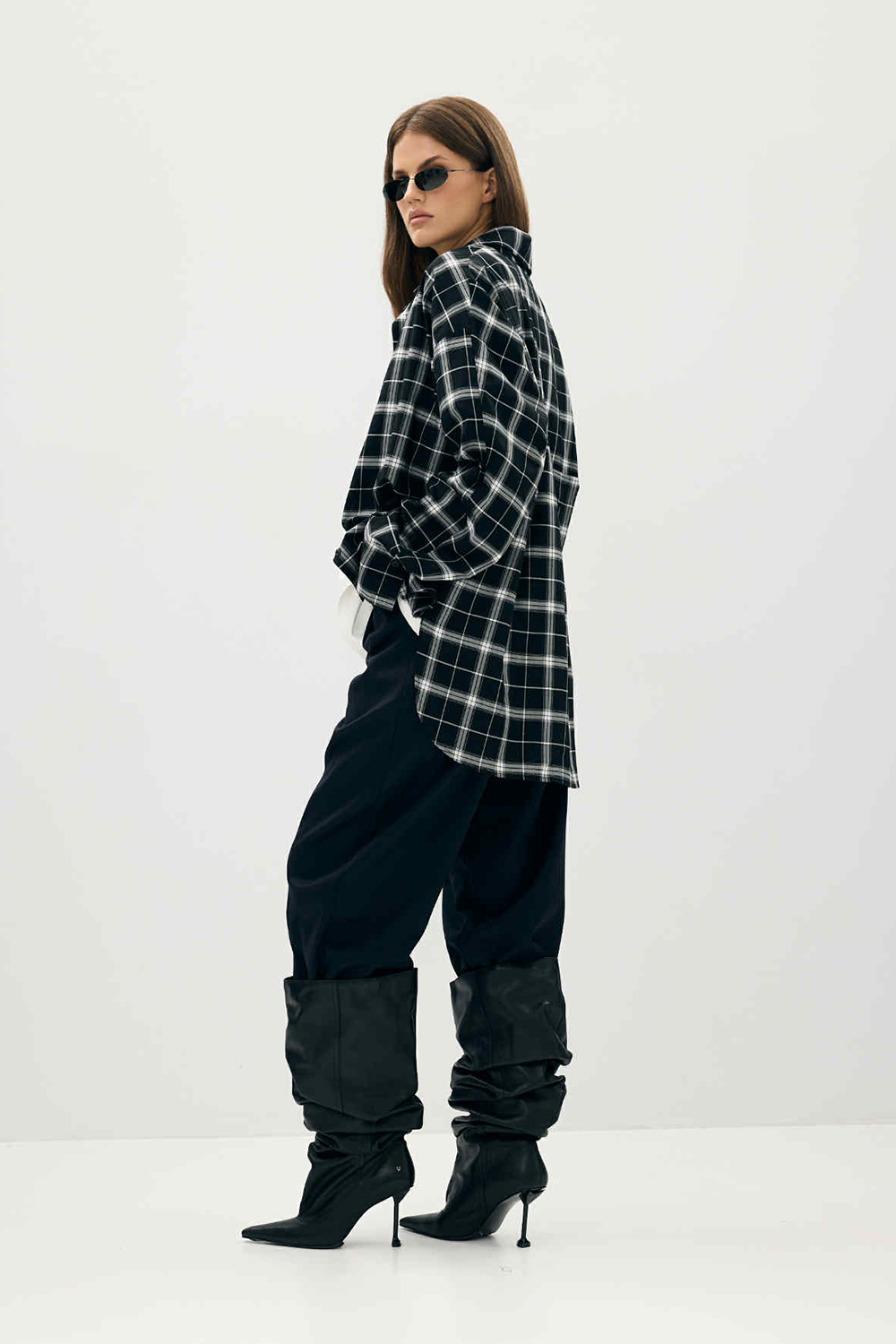 Koszula „Midnight Check” to połączenie minimalizmu i mocy współczesnego stylu. Uszyta z ekskluzywnej tkaniny pochodzącej ze stocku domu mody Balenciaga, zachwyca jakością wykonania i ponadczasowym printem w czarno-białą kratę. Jej oversize’owy krój dodaje nonszalancji, a miękka, gęsto tkana bawełna gwarantuje komfort noszenia przez cały dzień. Idealna dla kobiet ceniących nowoczesną elegancję z nutą streetowego charakteru. Świetnie wygląda zarówno w stylizacji z jeansami i trampkami, jak i w zestawie z kozakami na obcasie czy oversize’ową marynarką.