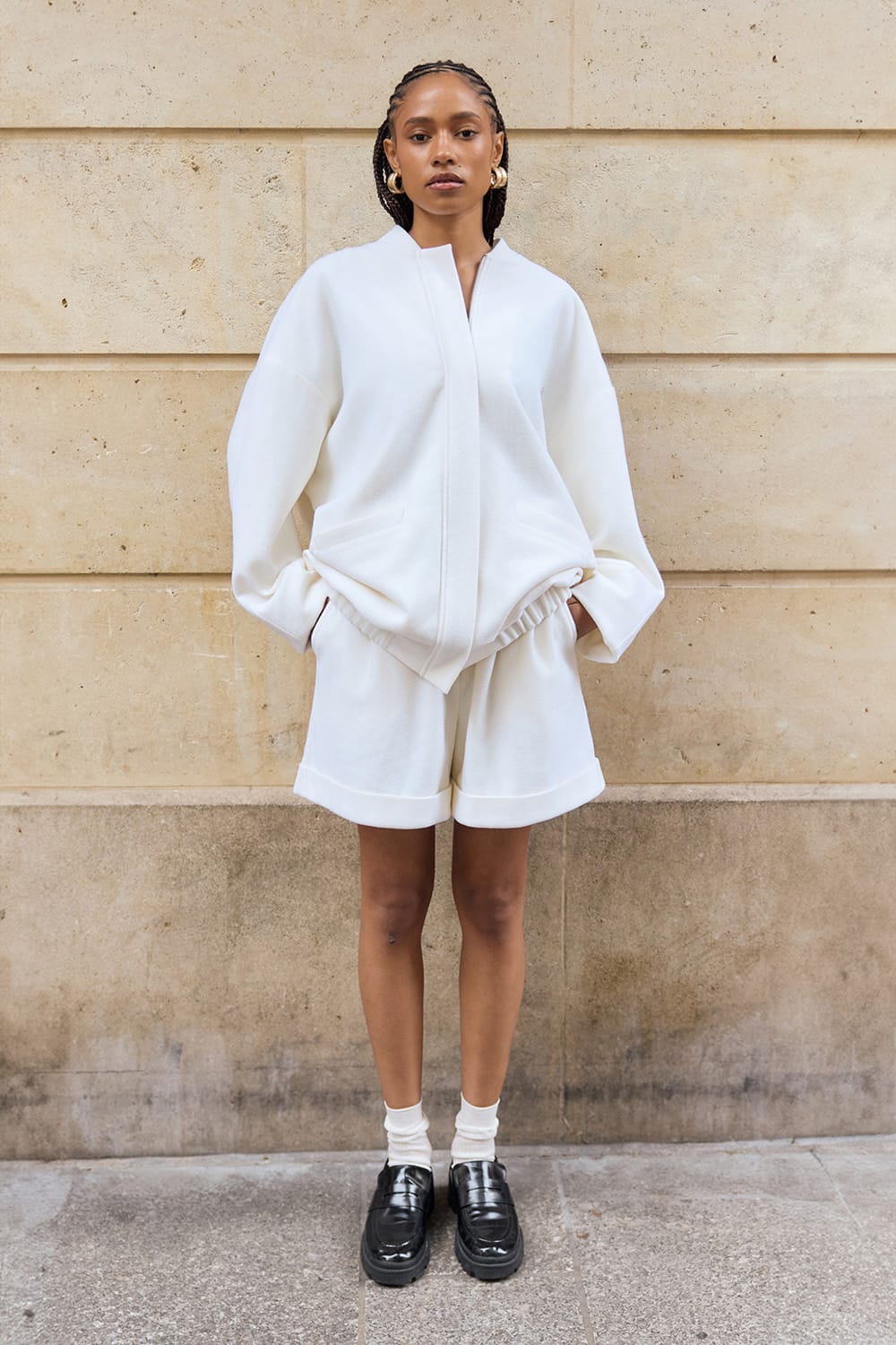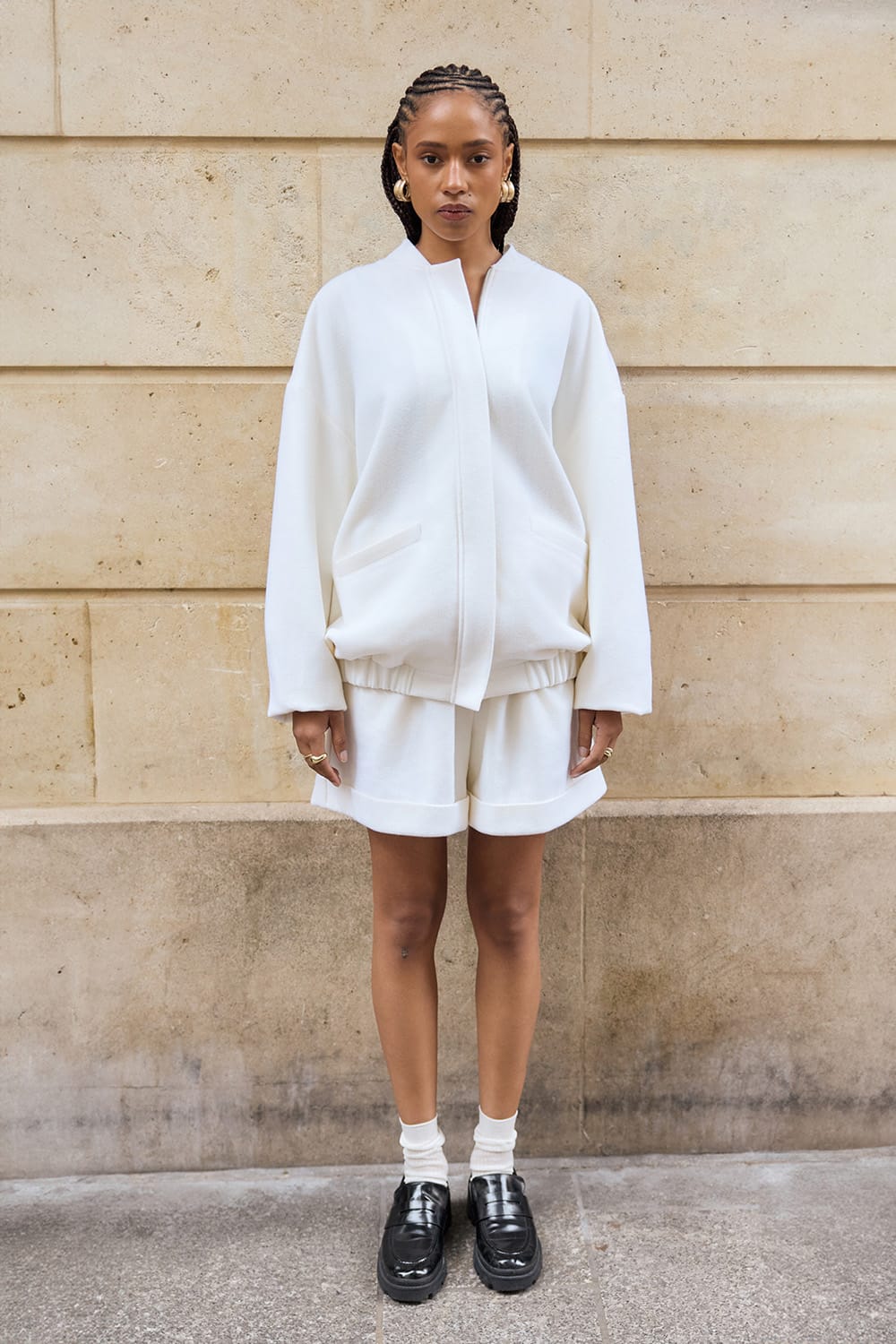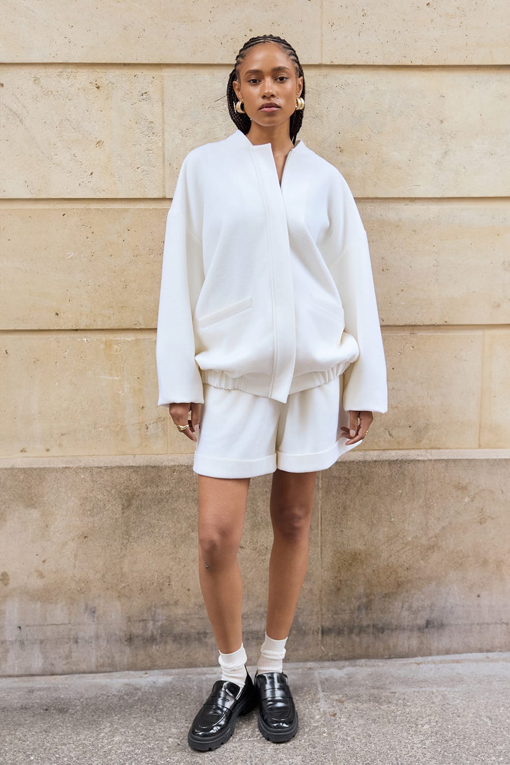 Lina Virgin Wool Bomber Jacet White