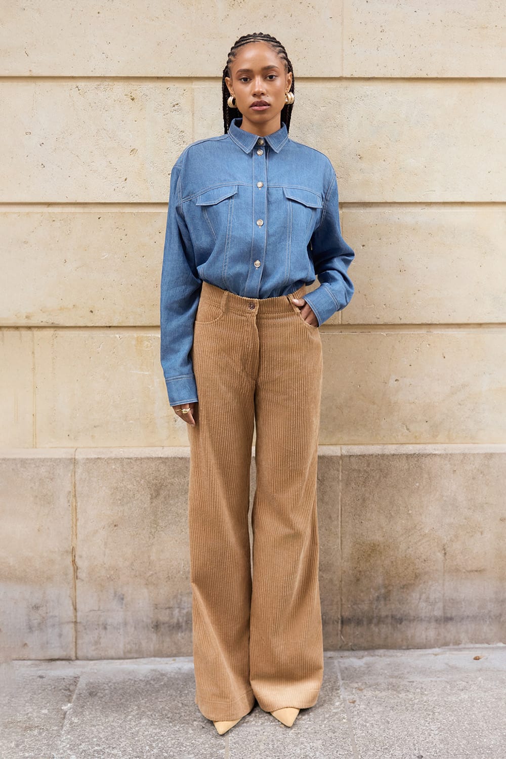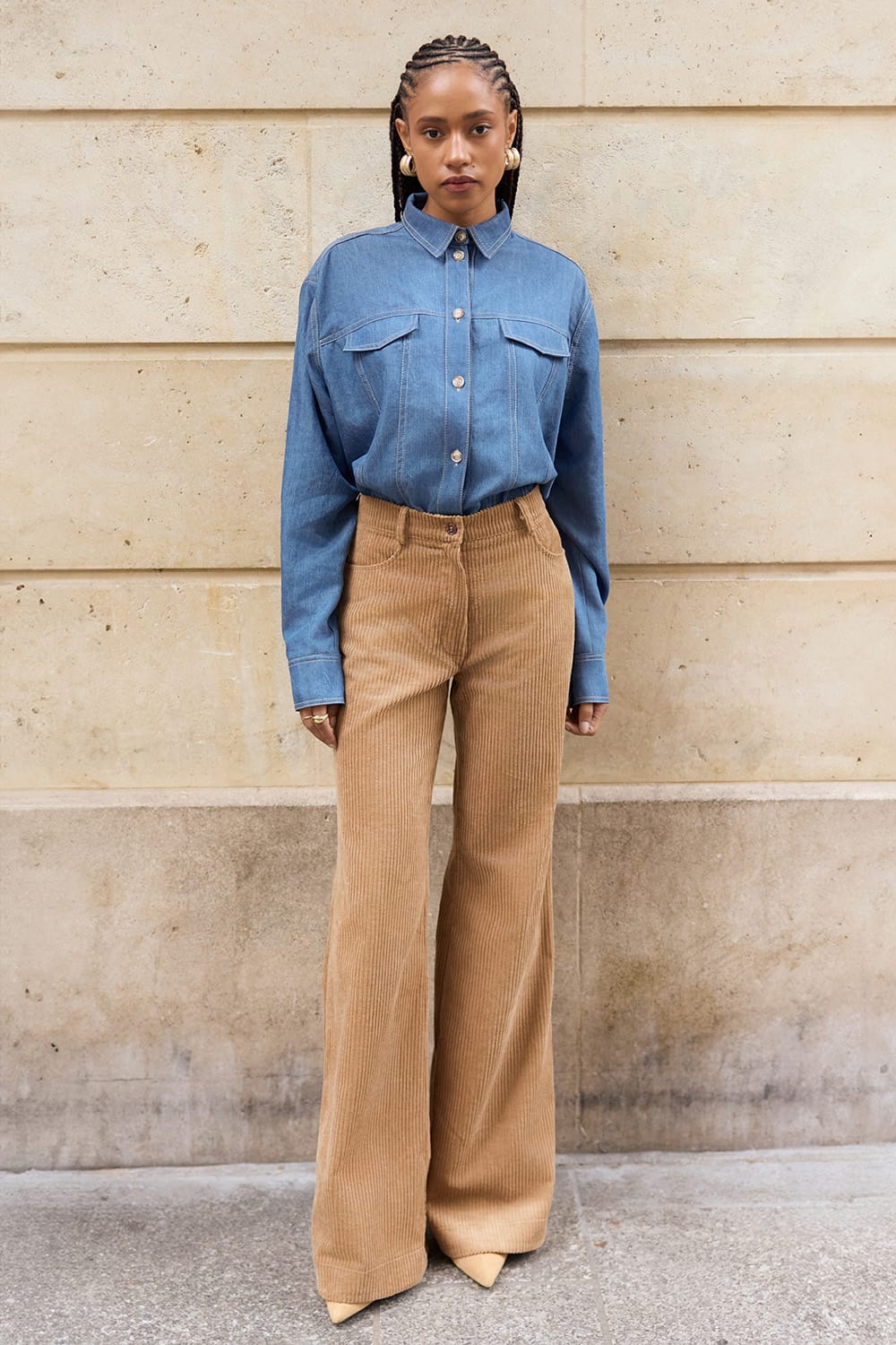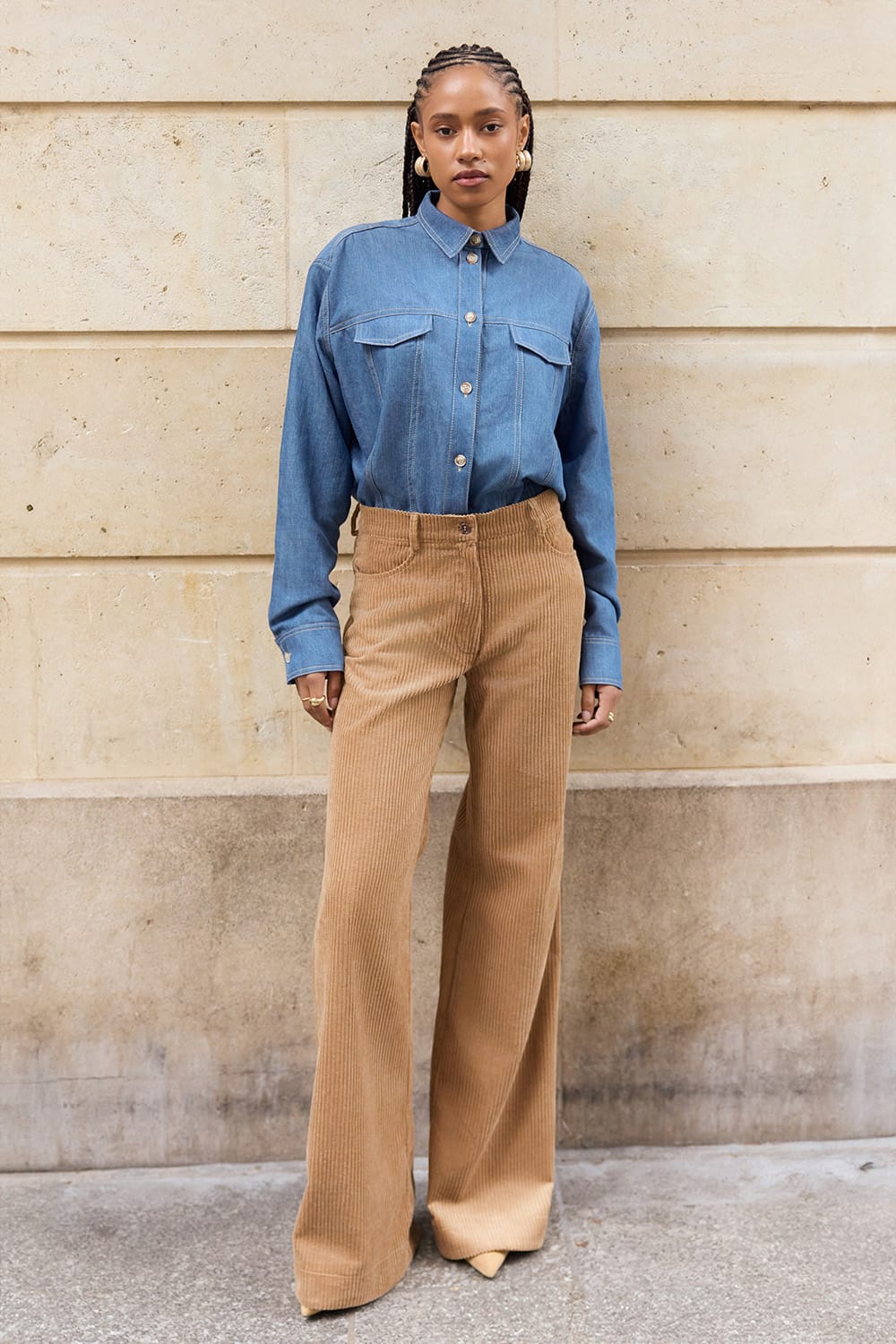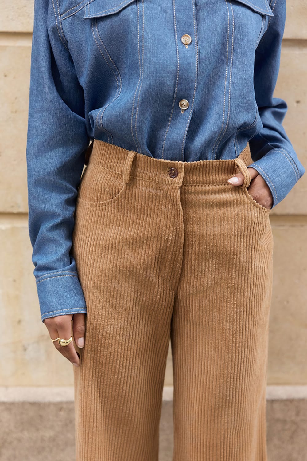 Sztruksowe spodnie z rozszerzona nogawka z wysokim stanem 100% bawełna