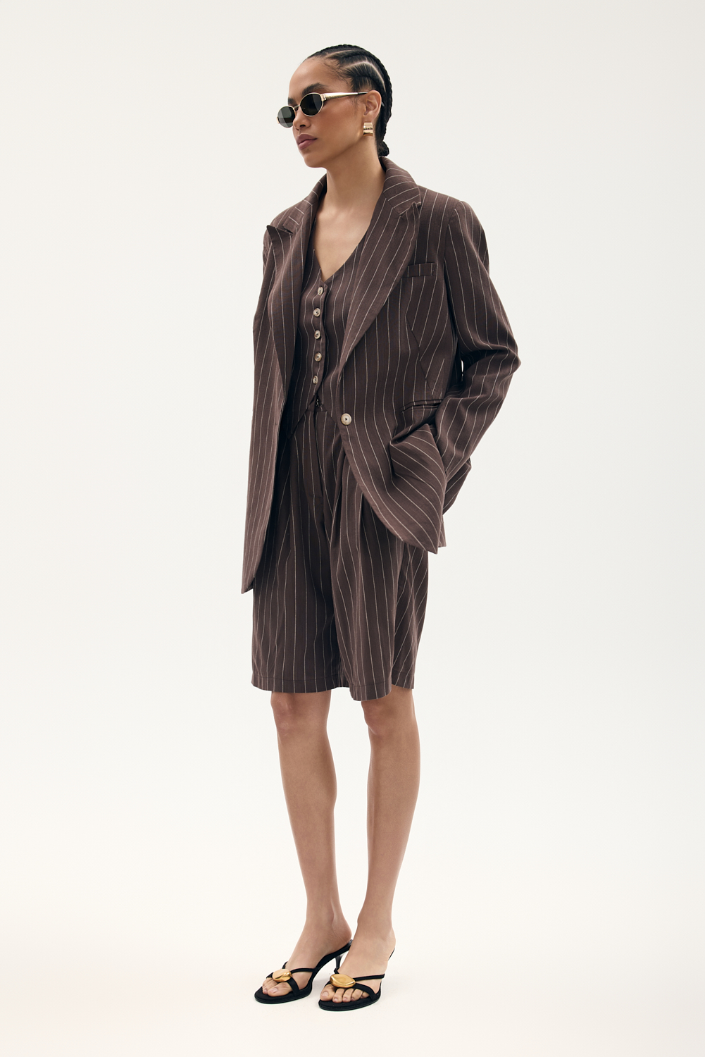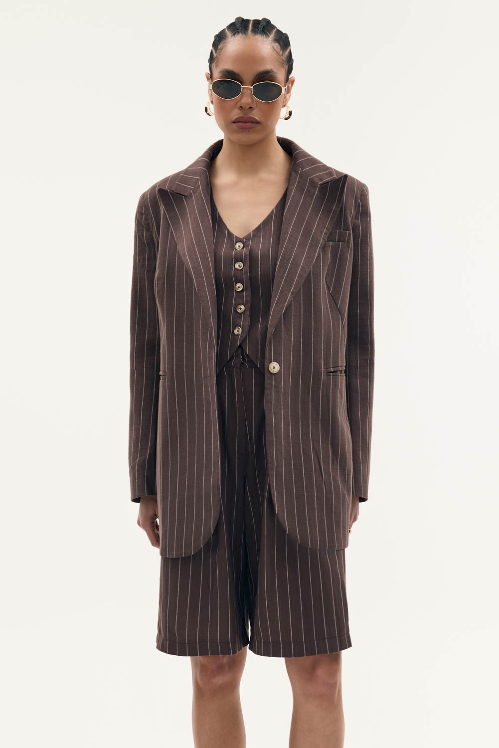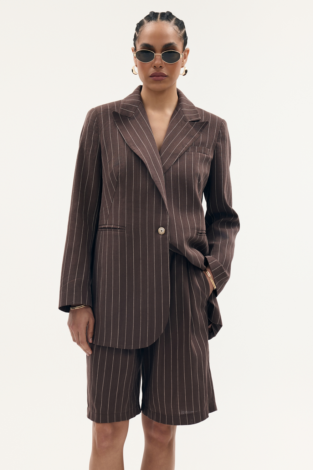 Długa marynarka o oversize’owym kroju z ozdobnymi kieszeniami, zapinana na guzik. wykończona elegancką podszewką. Świetna do absolutnie wszystkiego, od sukienek, aż po nasze zestawy garniturowe.