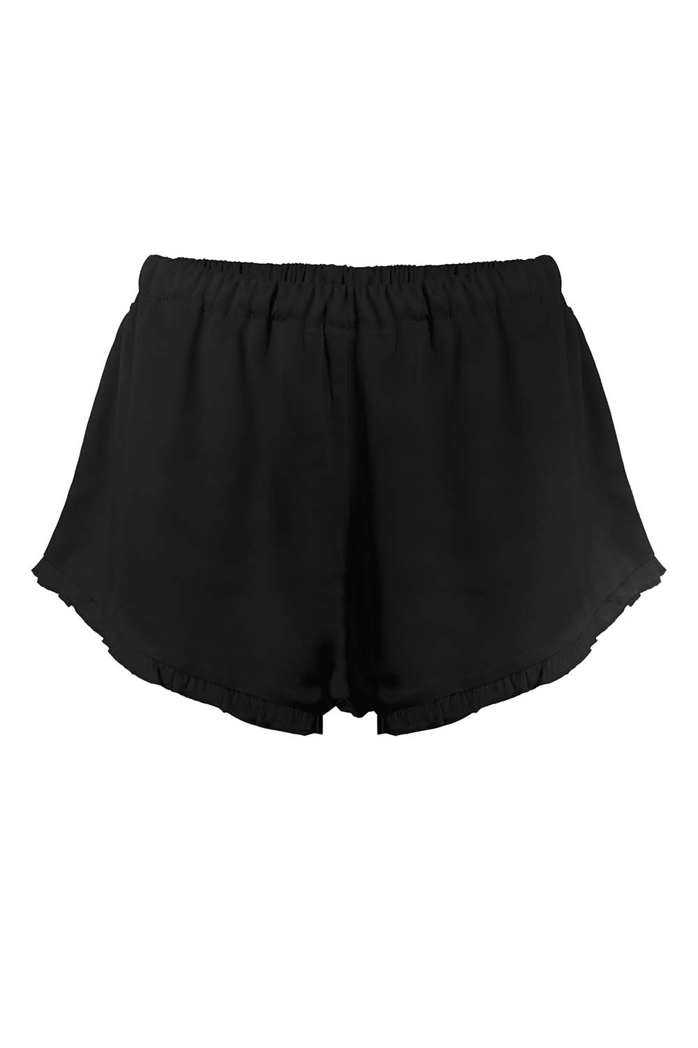 Krótkie spodenki, elastyczne w pasie, wykończone falbanką. Idealne jako homewear lub spodenki na lato. Polecamy w komplecie z topem Genlis.