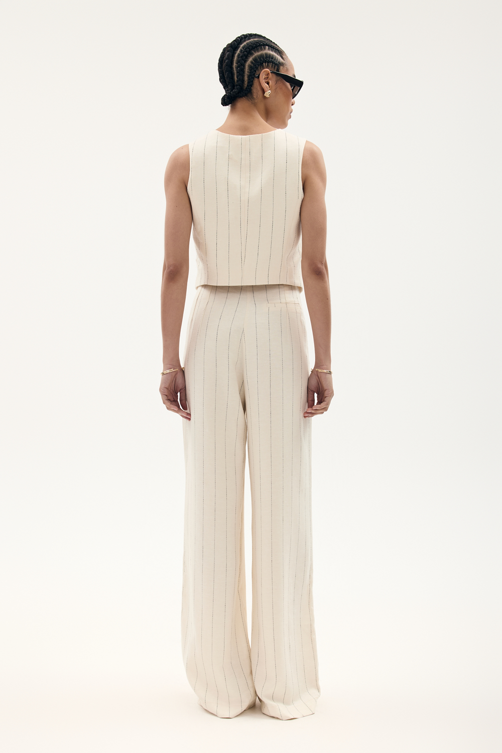 Długie spodnie o garniturowym kroju z wysokim stanem, zapinane na haftkę. Esencja elegancji i wygody.