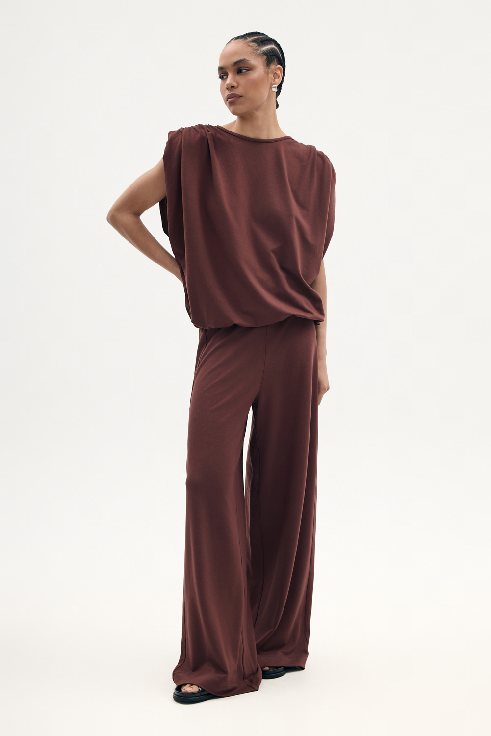 Spodnie z dzianiny bambusowej o luźnym kroju w kolorze czekoladowym na gumce