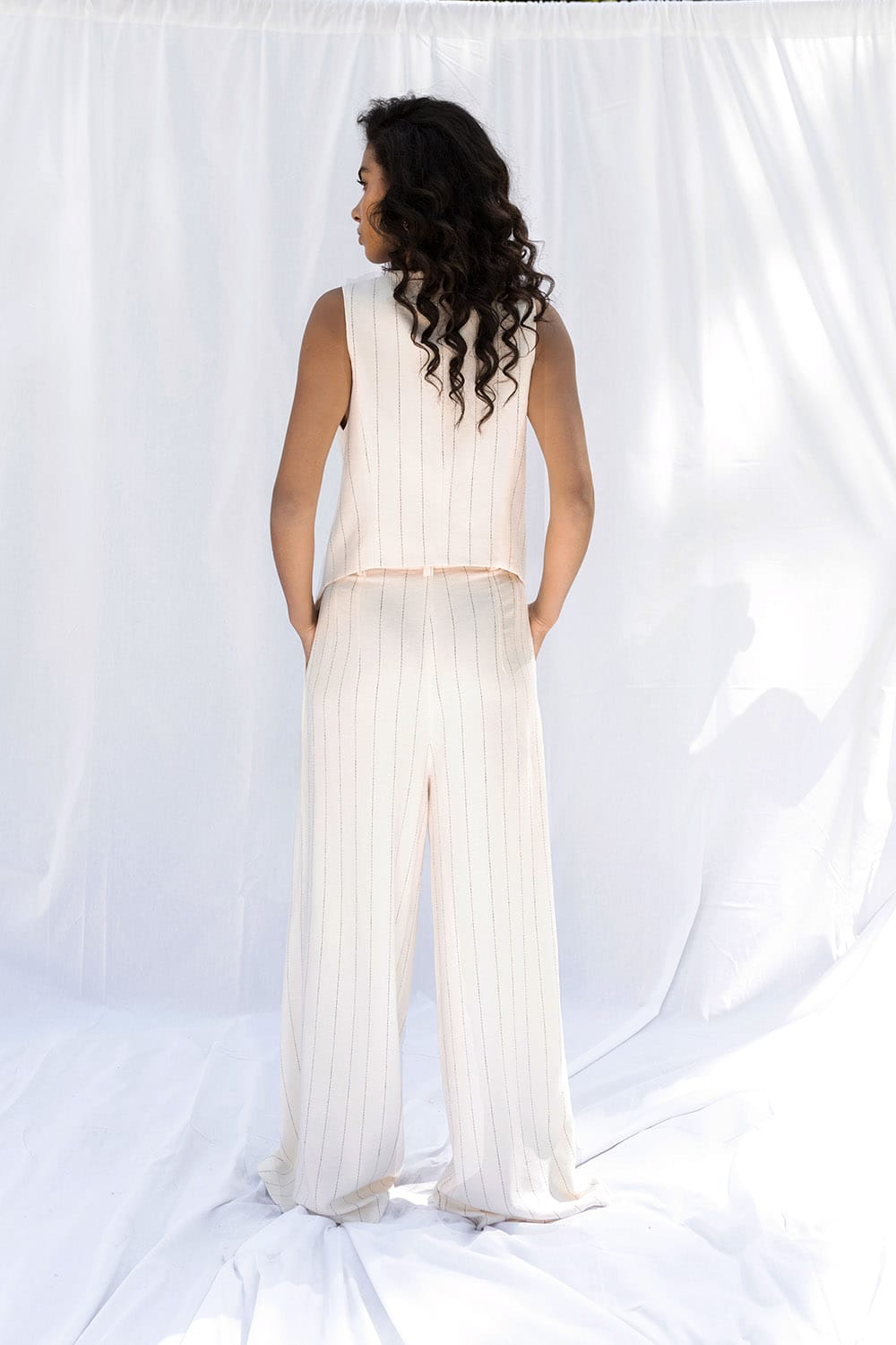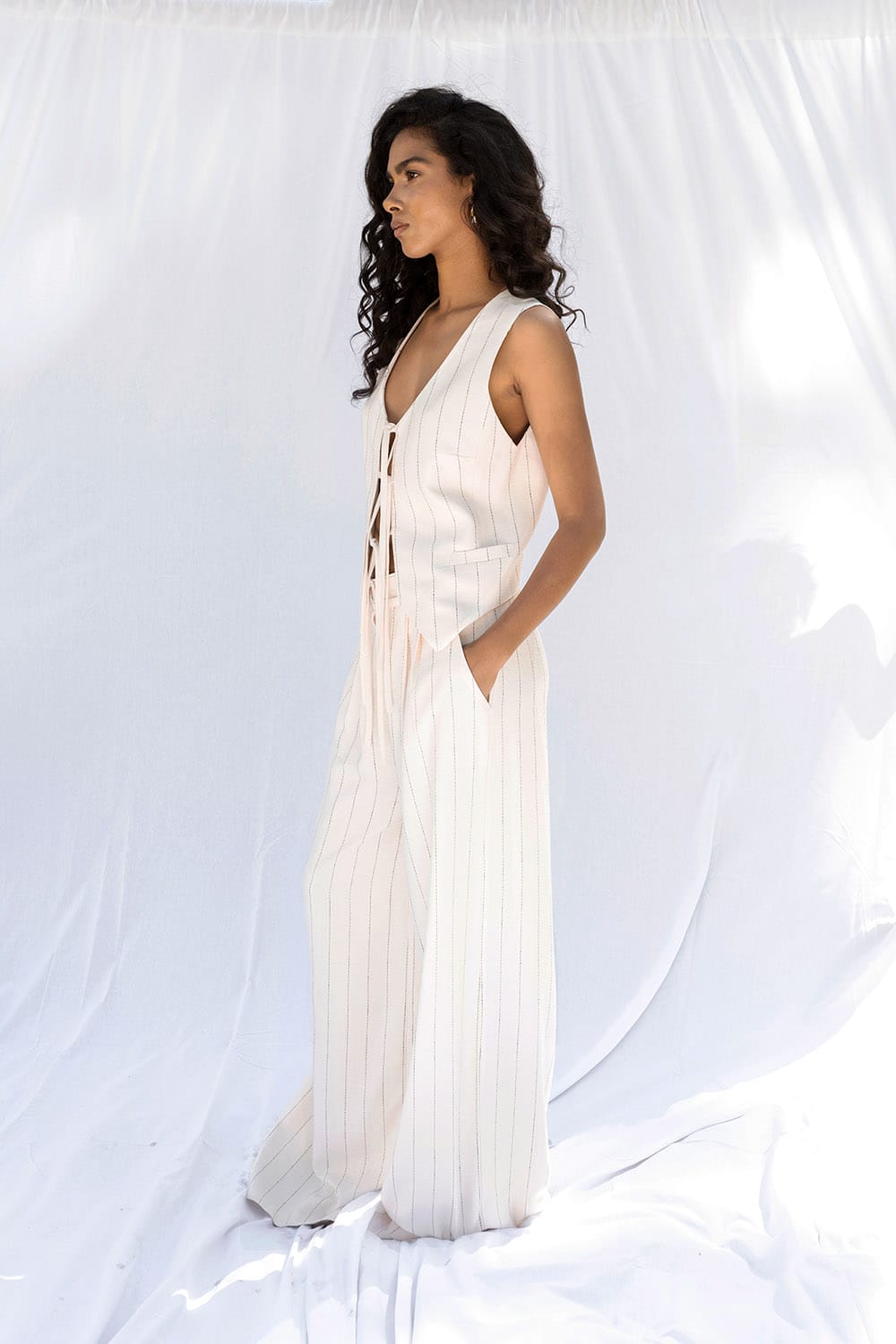 Spodnie o klasycznym kroju i szerokiej nogawce, z wygodnymi kieszeniami, zapinane na zamek (przód) i guziki. Komfort noszenia, swoboda i elegancja w jednym. Efektowne wykończenie i przemyślana konstrukcja sprawiają, że spodnie, mimo prostoty, robią wrażenie i podkreślają atuty sylwetki.