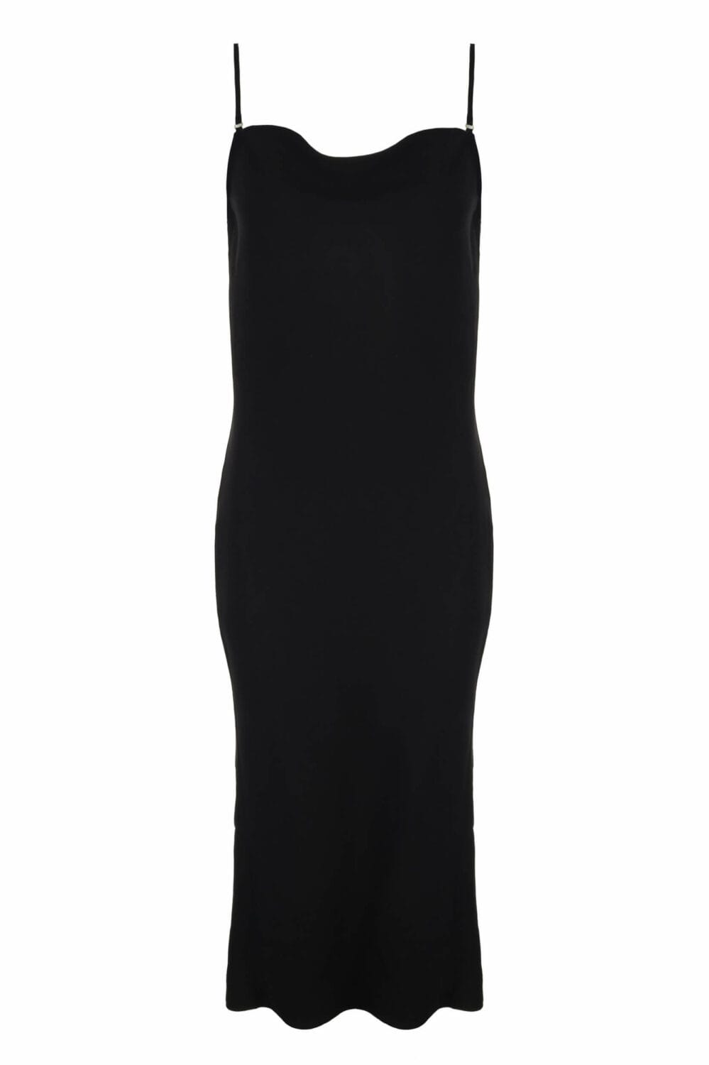 Sukienka midi, szyta ze skosu z regulowanymi ramiączkami i dekoltem w wodę z przodu i z tyłu. Prosta lecz wyjątkowa.