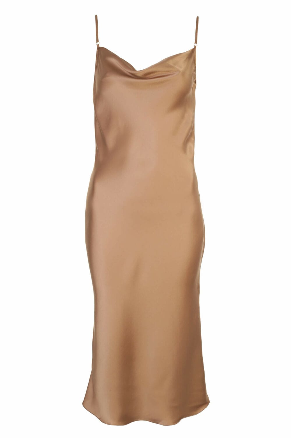 Sukienka midi, szyta ze skosu z regulowanymi ramiączkami i dekoltem w wodę z przodu i z tyłu. Prosta lecz wyjątkowa.