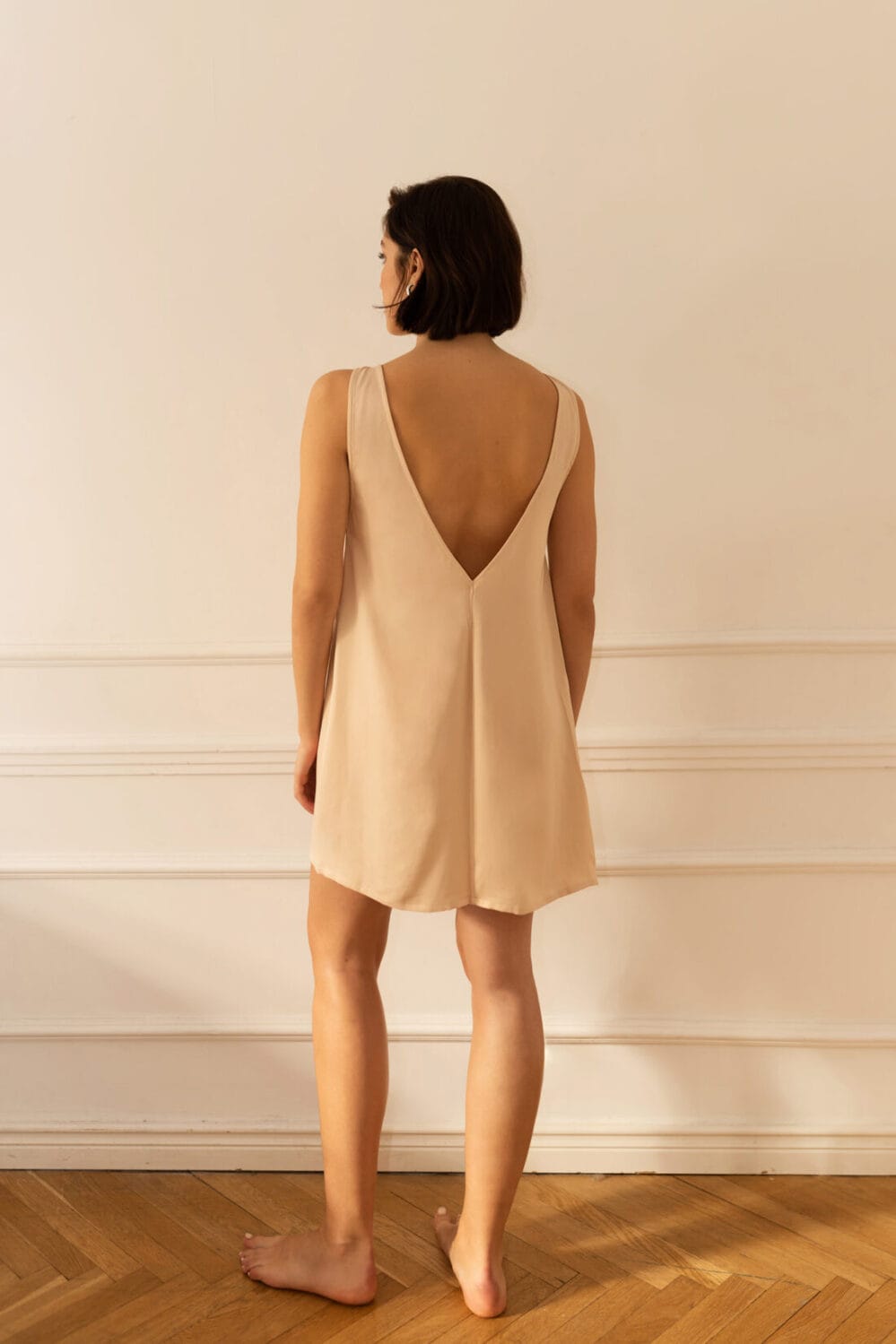 Luźna i zwiewna mini-sukienka z dekoltem „v” na plecach. Doskonała baza do stylizacji, a także idealny dodatek pod makramową sukienkę FIORELLA.