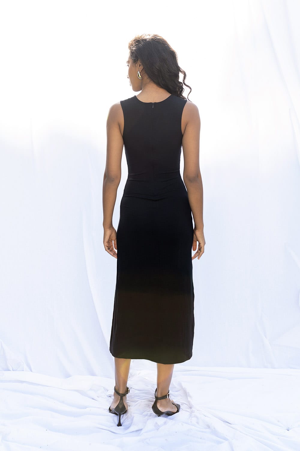 Prosta sukienka z efektownym rozcięciem na udzie podkreślająca sylwetkę