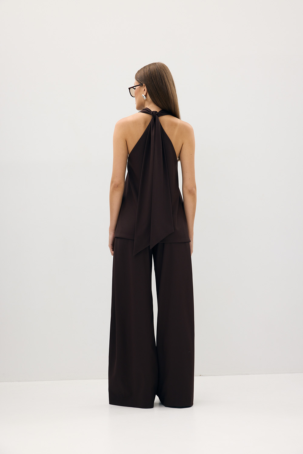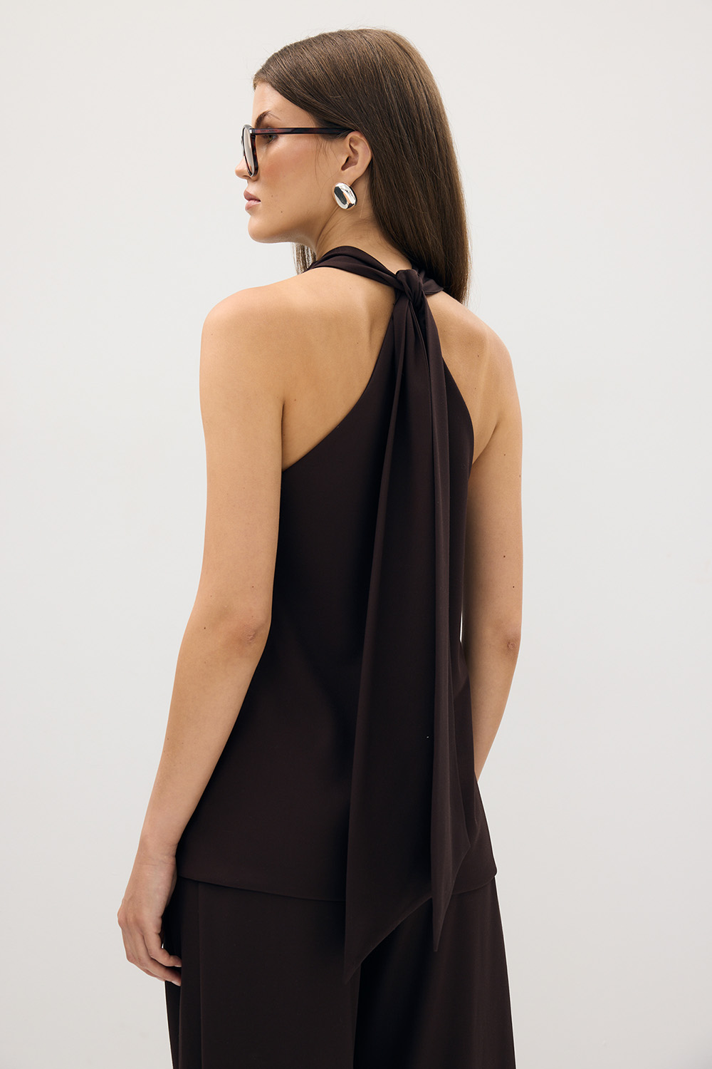 Czekoladowy Elegancki Top z Wiązaniem na Szyi