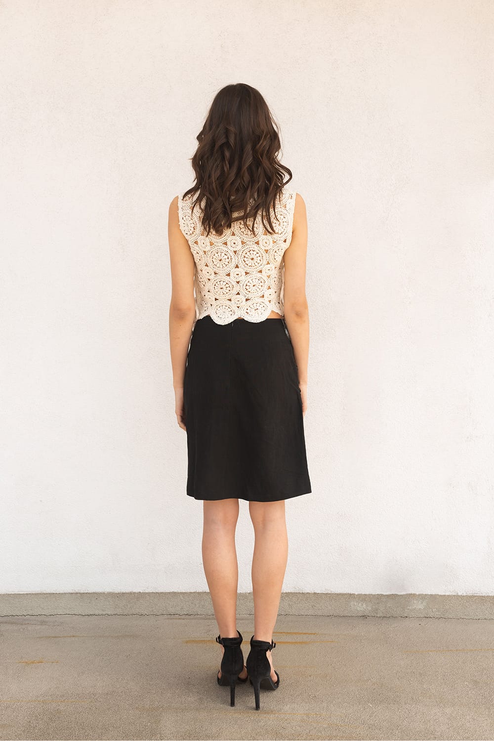 Top z włoskiej makramy bawełnianej, z efektownymi wiązaniami po bokach. Doskonały zarówno na plażę, jak i na miasto.