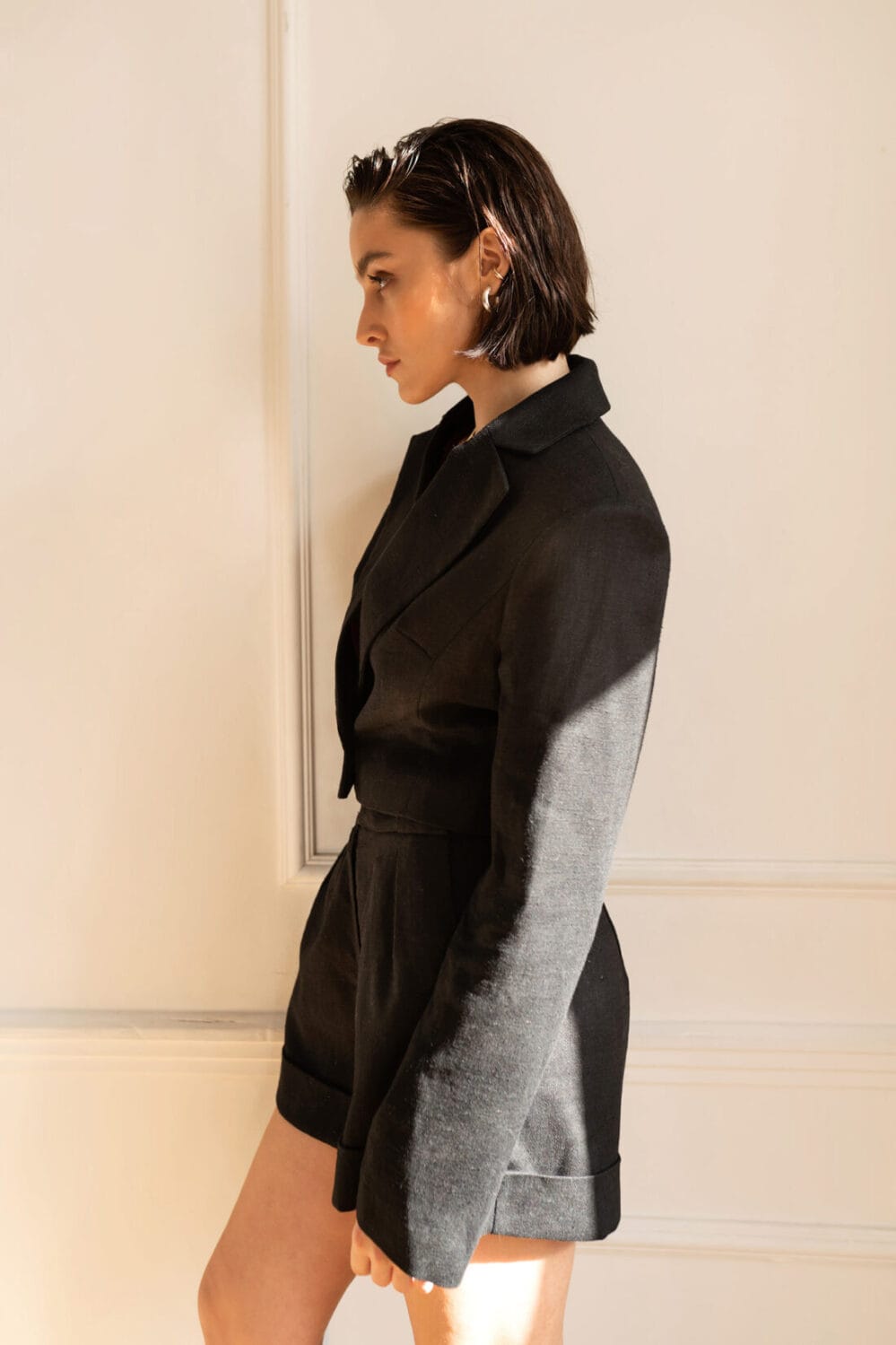 Krótki żakiet o lekko oversize’owym kroju, zapinany na guzik, wykończony elegancką podszewką oraz poduszkami w ramionach. Wykonany z ramii, która sprawdzi się w każdej porze roku. Doskonale łączy się z szortami METZ lub spódnicą LILLE.